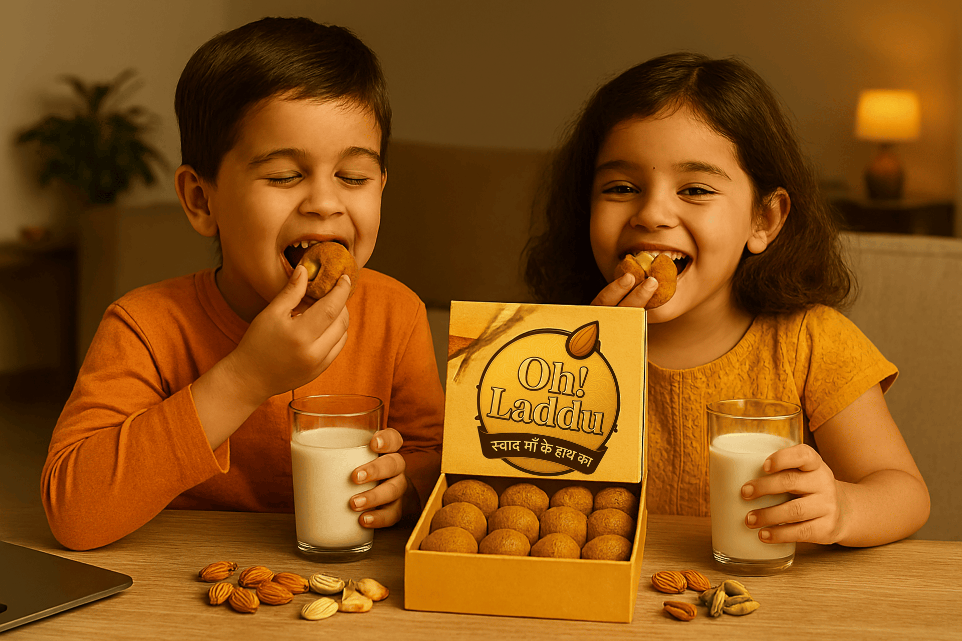 At Oh! Laddu, we handcraft premium laddus with pure bilona ghee, desi khand, jaggery, and dates — no refined sugar or preservatives. Blending tradition with nutrition, our guilt-free sweets bring joy to every generation, from kids to elders. Healthy, tasty, and made with love — just the way homemade laddus should be.
